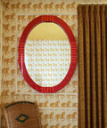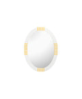 Handmade Son Mai lacquer framed oval mirror with contrast colour stripe detail.