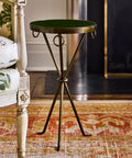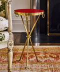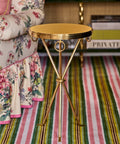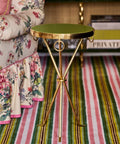 The KRB Drinks Table is a retro martini style table with a polished unlacquered brass base and glossy finish. Designed in collaboration with KRB, bringing Kate Rheinstein Brodsky's uniquely charismatic and colorful perspective to timeless designs. Handmade in Vietnam by master craftsmen using traditional Son Mai lacquer techniques.