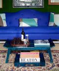 Handmade Son Mai lacquer tray whose subtly oriental cutout details around the edges also serve as neat handles.